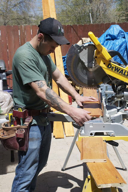 Here is the beginning of my hubby's and dads latest project They started the roof on the back porch! I am so excited! I've been procrastinating buying out door furniture since we moved in two years prior because birds had made nests in the rafters and well, you can imagine the mess. But out of nowhere they got the supplies and got to work! This is what the roof looked like before. The rafter's were uneven and birds had basically taken over. I didn't see any reason to move them before we had too.